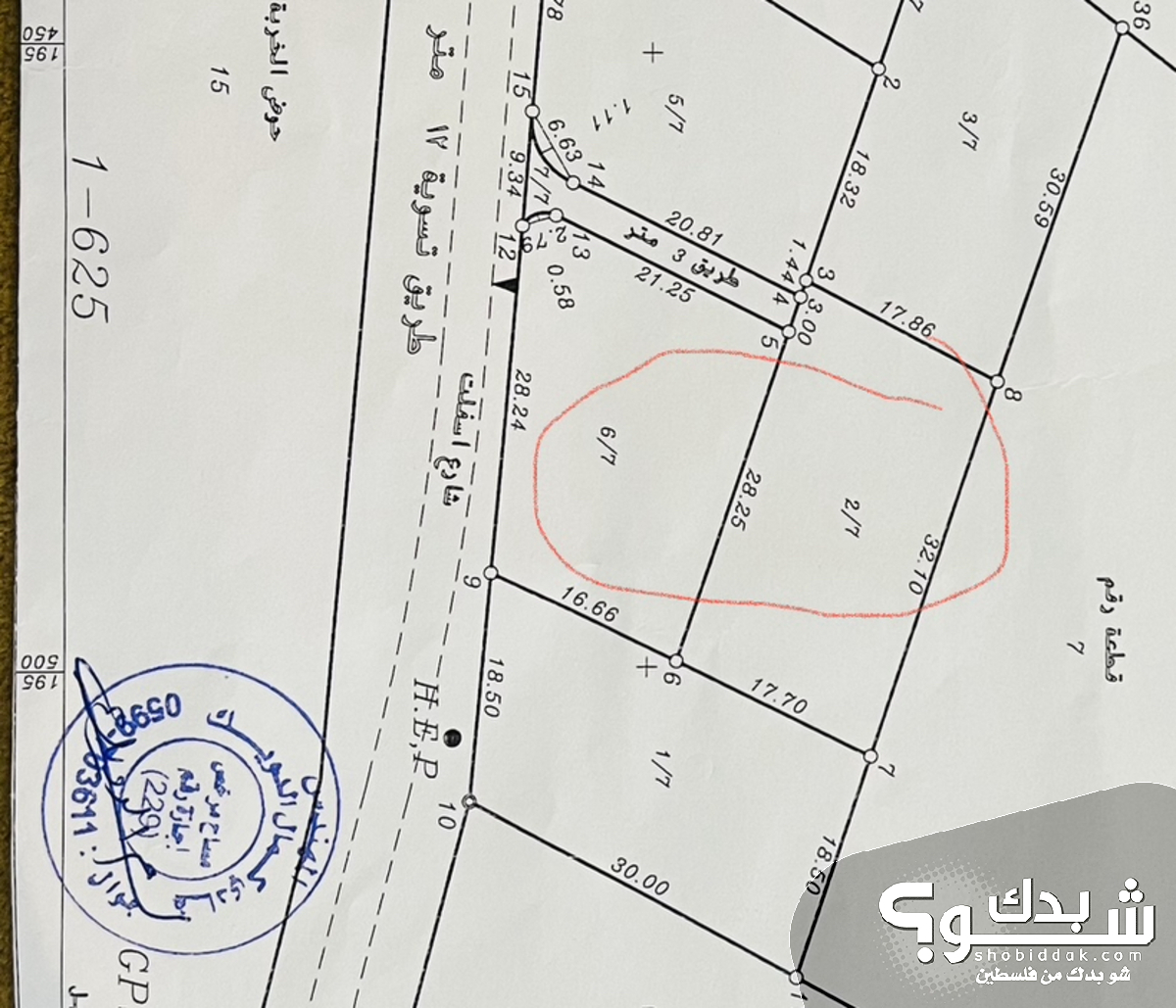 - قطعة ٢/٧ متوفرة مع شارع خاص بلقطعة